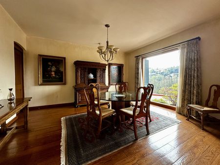 En excelente ubicacion , cerca de colegios, centros comerciales .Casa en excelente estado de conservación con jardín y terraza y excelente vista, acabados de primera calidad, pisos de madera de encino, puertas de madera., loseta. Muy cómoda, La escalera de entrada nos conduce a un jardin plano .