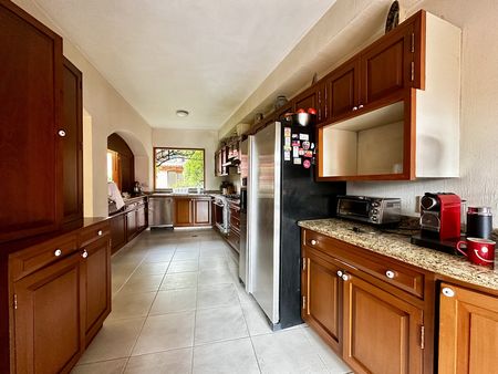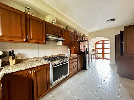 Cocina: tiene ventanales hacia la terraza y el jardin .los muebles de madera, tope de granito, alacena ,antecomedor