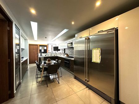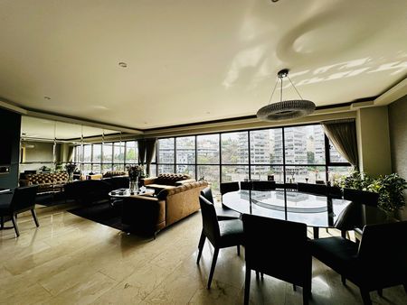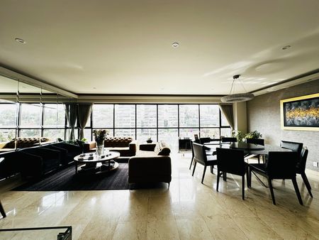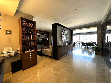 Ubicado a tan sólo 5 minutos de Interlomas y de Bosques de Las Lomas en Residencial TIARA en Tecamachalco encontramos este iluminado y moderno departamento de 245m2 con excelentes acabados en mármol y madera . Dos elevadores privados al piso con videocamaras de seguridad, amplia área de sala comedor con increible vista arbolada. baño de visitas, área familiar con buenos closets de blancos. Amplia cocina con despensa y espacio para Refrigerador SubZero. Tres recámaras cada una con vestidor y baño privado. Cuarto de servicio con baño y lavandería.